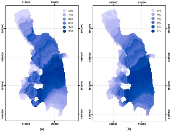 where dT represents the difference in temperature, and dH the difference in elevation between the upper and lower stations. Then, using the precipitation gradient from Nowak and Hodson [], we calculated rainfall amounts for each grid based on the rainfall measured at the Polish Polar Station, using Equation (2),