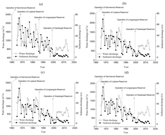 - Mu, X.M.; Wang, W.Z.; Gao, P.; Zhao, G.J. Progress and discussion on sediment load variation research of the Yellow River. Yellow River 2014, 36, 1–7, (In Chinese with English abstract). [Google Scholar]