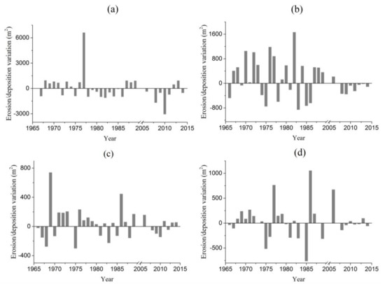 4.2.1. Erosion/Deposition Variations of Whole Cross-Section