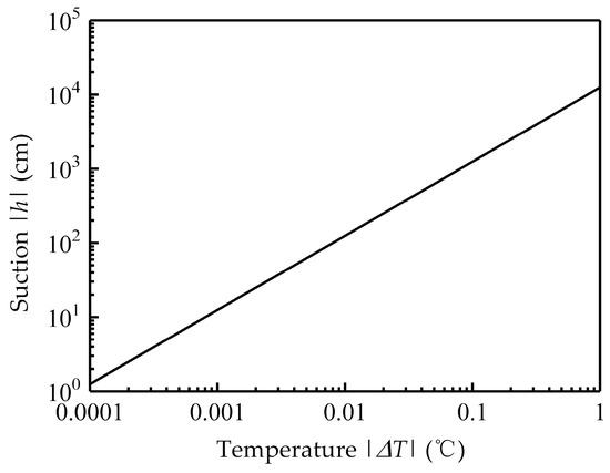 where is the hydraulic head () and is the freezing temperature depression (°C). Figure 13 presents the relationship obtained using Equation (24).