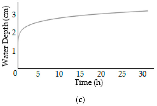 (a) Approximate water depth evolution form for sandy loam soil. (b) Approximate water depth evolution form for silt loam soils. (c) Approximate water depth evolution form for clay loam soil.