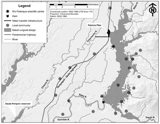 The empirical research presented in this article was carried out in Patricia Pilar parish and its surrounding peasant and Afro Ecuadorian communities, from October 2015 until September 2017. Field work consisted of two visits to the research area. The first visit took place from October 2015 until April 2016. The second was in September 2017. This case study is based on historical and ethnographic research [,]. It is also based on an ‘ethnography of technology’ [,]. Water management involves several dimensions: technical, organizational, normative/socio-legal, cultural and socio-economic/political. While it is usual to research these areas separately, it remains a challenge to integrate all those dimensions in an interdisciplinary manner. Technography: the ethnography of technology provides a methodological approach that intends to integrate technological processes as part of human-technology interactions []. Particularly, technography allows us, in the case of the Baba dam, to integrate SCOT’s conceptual approach with the empirical findings.