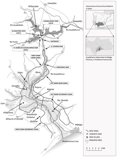 - Duarte-Abadía, B.; Boelens, R. Colonizing Rural Waters: The Politics of Hydro-Territorial Transformation in the Guadalhorce Valley. Water Int. 2019. [Google Scholar] [CrossRef]