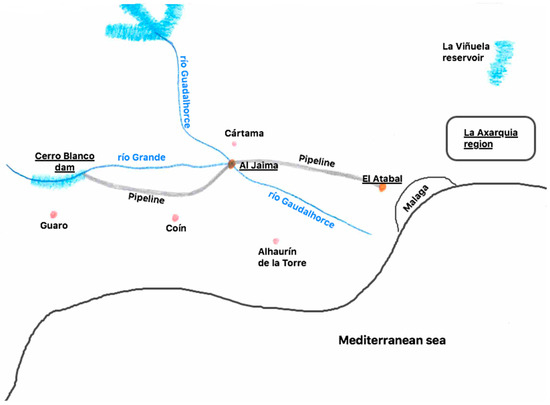 When the dictatorship ended and Spain entered the age of democratization, the Política Hidráulica technocratic model continued to reign over water governance. Since the mid-1980s, it was planned to dam the Río Grande with the Cerro Blanco Dam, already part of the Hydrological Plan for the Southern Basin (PHCS) from 1995. The dam was designed to supply water to Western Málaga city [5,75]. It was also justified to regulate Río Grande’s considerable high flows during winter.