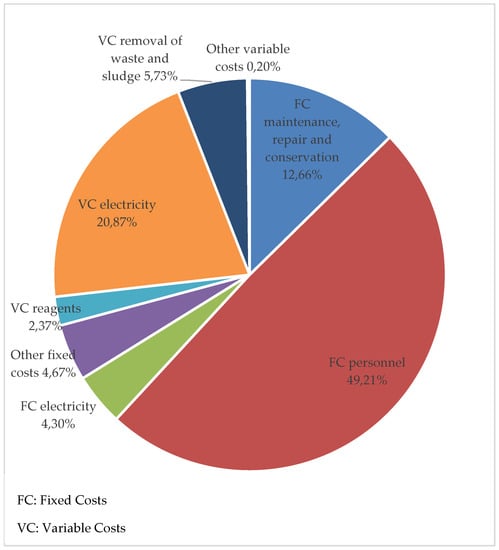 - The initial cost of the facilities is the value of the investment, divided between industrial building (59.79%) and electrical and electronic equipment (40.21%). The associated percentages are derived from the average share of total costs of these two concepts in ten analysed WWTP projects.