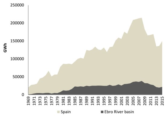 There are geographical differences within the river basin; the distribution of freshwater resources among competing users is already posing a problem in specific areas with water scarcity problems. Thus, according the Hydrological Plan of the Ebro Hydrographic Demarcation 2015–2021 (for the complete Hydrological Plan, see [57]), water scarcity in the area of the Andorra coal-fired power, with its demand of 18 hm3/year, has required agreements to be reached to balance the needs of energy and irrigation. Therefore, future research on this matter at a lower level of disaggregation could be interesting, given the geographical differences within the Ebro River basin itself.