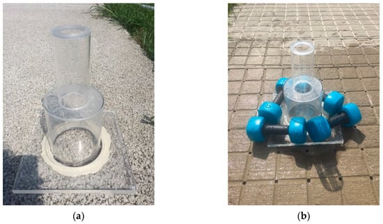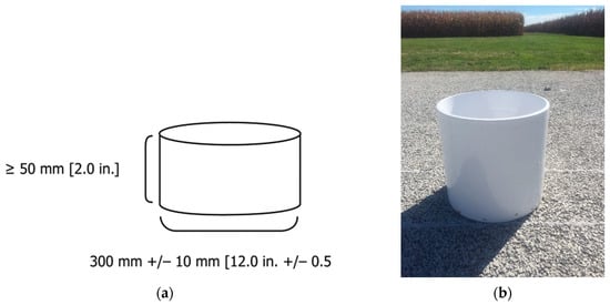 (a) Dimensions of infiltration ring described in ASTM C1701/C1701M and ASTM C1781/C1781M [,], and (b) the cylinder ring used in this study.
