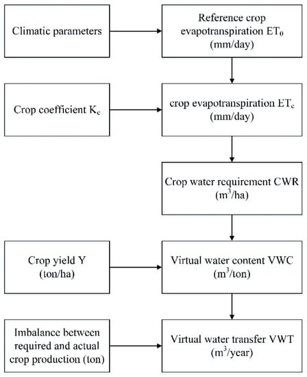 Procedures in calculating the virtual water flows (adopted from Liu et al. (2015) []).