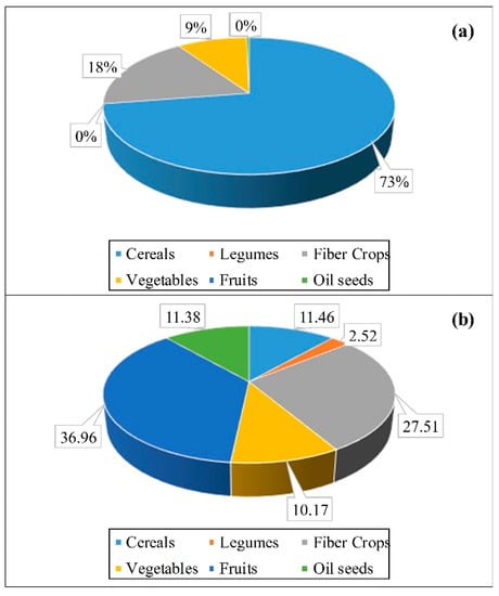 Fruits, however, is the type that captured the greater amount of imports with annually. Fiber crops (265.33 × 106 m3), oil seeds (129.20 × 106 m3), vegetables (), and legumes () held the next positions, respectively.