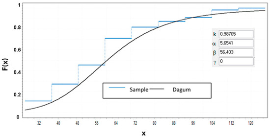 However, the Dagum distribution [21] presents all the requisites to be used in hydrological studies. For example, it is a continuous distribution of extreme and non-negative values of the continuous variable. The Dagum distribution is used in different scientific fields, such as econometrics, economic theory (particularly for model ranges as diverse as wealth distribution), the banking sector (by using the distribution methods of aggregate losses) and the insurance sector (applied to analyze solvency) [22].