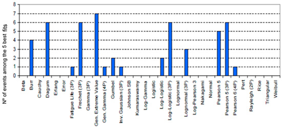 Subsequently, and to confirm the above results, tests of goodness-of-fit were carried out with a series of statistical distributes (applied both in hydrology and in other disciplines), using the ten stations with the largest sample size (among the 52 stations).