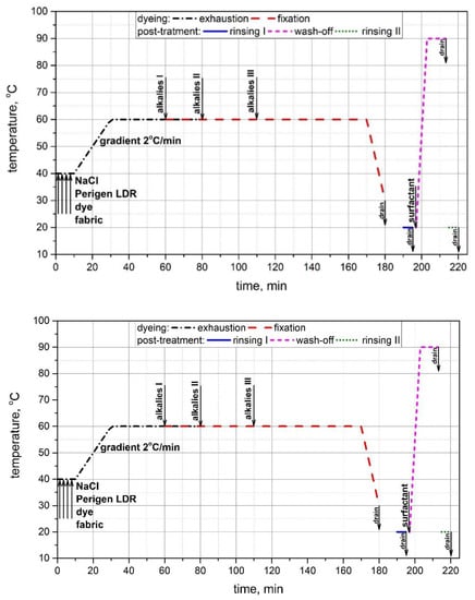 - International Organization for Standardization (ISO). ISO 105-C06:2010—Textiles—Tests for Colour Fastness—Part C06: Colour Fastness to Domestic and Commercial Laundering, n.d. Available online: https://www.iso.org/standard/51276.html (accessed on 16 December 2018).