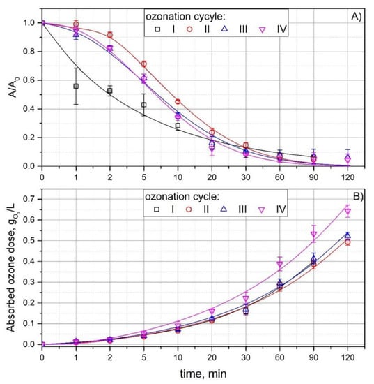 - Zhao, W.; Liu, F.; Yang, Y.; Tan, M.; Zhao, D. Ozonation of Cationic Red X-GRL in aqueous solution: Kinetics and modeling. J. Hazard. Mater. 2011, 187, 526–533. [Google Scholar] [CrossRef] [PubMed]