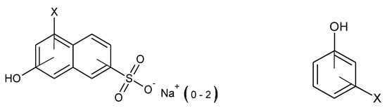 - Zollinger, H. Color Chemistry: Syntheses, Properties, and Applications of Organic Dyes and Pigments; Wiley VCH: Weinhein, Germany, 1991. [Google Scholar]