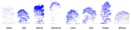 - Koenig, K.; Höfle, B. Full-Waveform Airborne Laser Scanning in Vegetation Studies—A Review of Point Cloud and Waveform Features for Tree Species Classification. Forests 2016, 7, 198. [Google Scholar] [CrossRef]