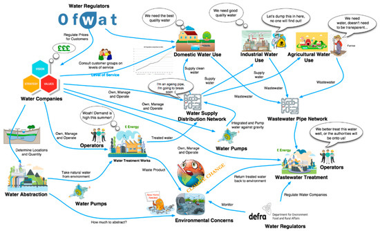Water is essential to people, businesses and the environment. The sustainability of water resources is fundamental to life as we know it and access to clean water is essential to society. A generalised depiction (rich picture [1]) of the water “system-of-systems” (SoS) can be seen in Figure 1, which illustrates the complexity and high-level connectivity between stakeholders and constituent systems. An SoS is a large set of interconnected systems which collaborate to bring about behaviours and capabilities greater than the sum of the individual parts.