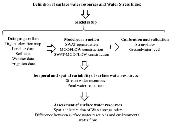 Flowchart of methodology for assessing the surface water resources in the Big Sunflower River Watershed.