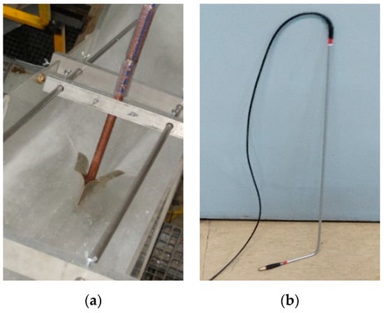 The second group of instrumental equipment is used to characterize the channel flow, measuring velocity and concentration profiles in the final section of the channel. A Pitot probe with a pressure sensor was used to measure the flow velocity. This sensor has a sampling frequency of 100 Hz and is connected to data acquisition software developed in CEDEX with LabVIEWTM 2010 (version 10.0 (32 bit), National Instruments, Austin, Texas, USA). Recording time in each test was 100 s. Post-processing was done considering manometric pressure head, atmospheric head and Pitot head. The total head is included in the energy Equation (1) to obtain the average velocity in every point.