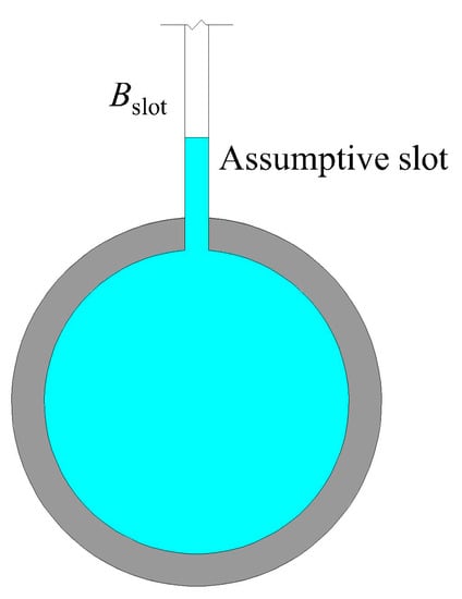 Using the slot method [29], assuming to be equal to and the pressure wave speed in pressured flow , the two models are combined into a corresponding model. Therefore, the width of the assumptive slot is given by . For a circular tube, the assumptive slot is shown in Figure 5.