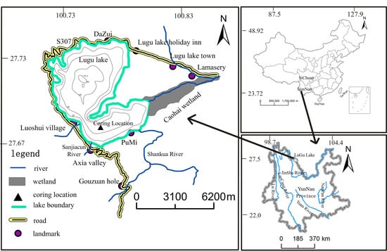 - Zhang, Y.; Su, Y.; Liu, Z.; Chen, X.; Yu, J.; Jin, M. A sediment record of environmental change in and around Lake Lugu, SW China, during the past two centuries. J. Paleolimnol. 2016, 55, 259–271. [Google Scholar] [CrossRef]