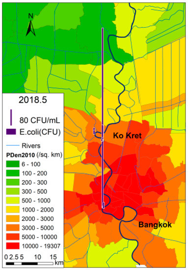 Furthermore, as shown by the present study, the high level of E. coli on the left bank side of Bang Krachao can also be considered to be partially related to Khlong Toey, one of the largest low-income communities in Bangkok. Therefore, eliminating the health risk is not simply a matter of sewer construction, but also requires an innovative solution.