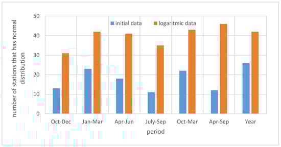 Number of stations that have a normal distribution considering the reference period using the Kolmogorov–Smirnov test.