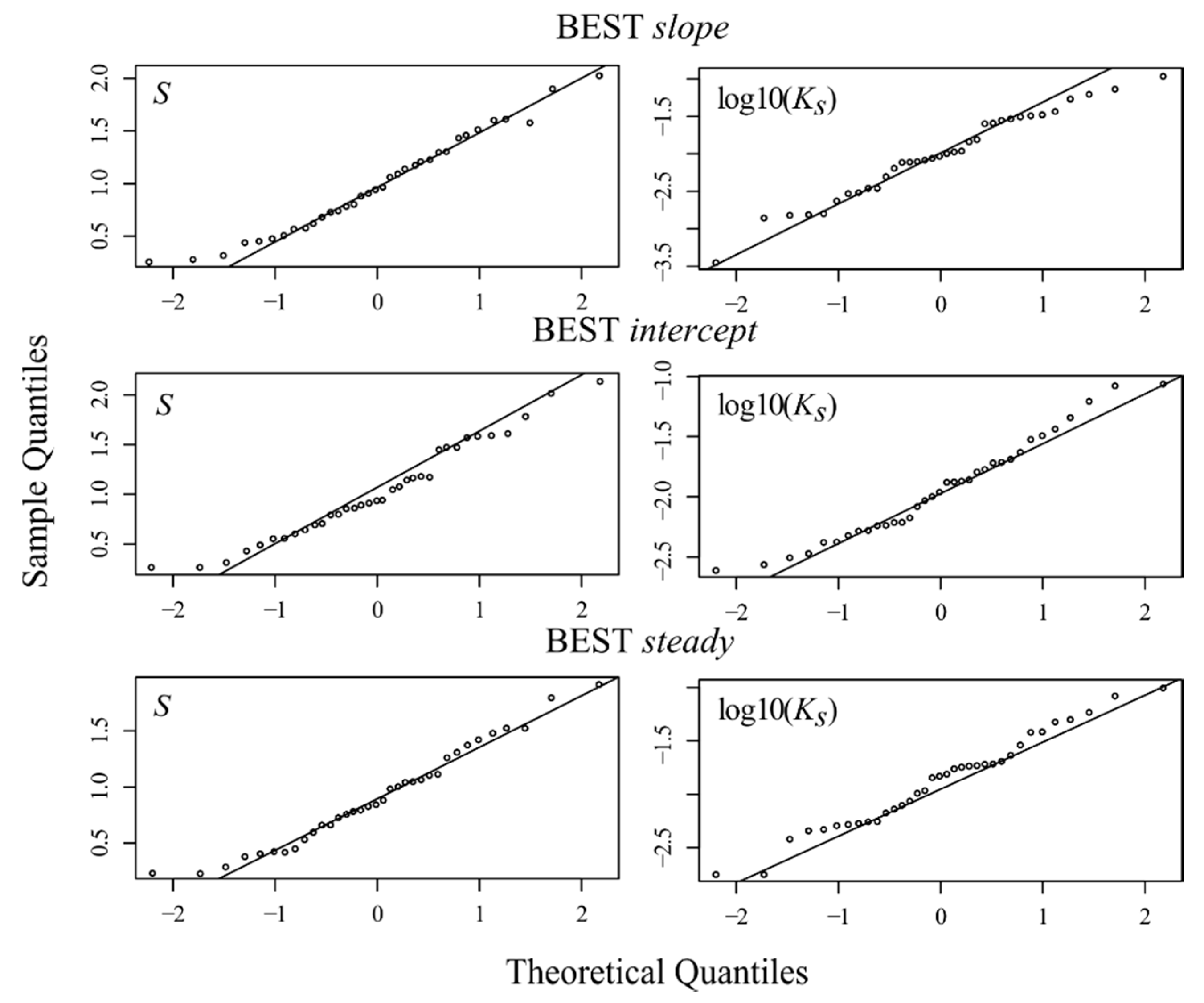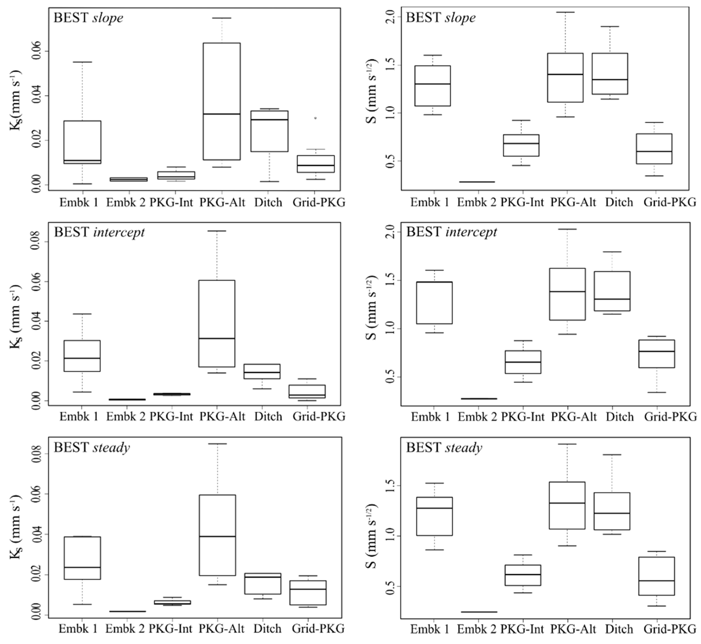 - Lassabatere, L.; Angulo-Jaramillo, R.; Yilmaz, D.; Winiarski, T. BEST method: Characterization of soil unsaturated hydraulic properties. In Advances in Unsaturated Soils; Caicedo, B., Murillo, C., Hoyos, L., Colmenares, J.E., Berdugo, I.R., Eds.; CRC Press: Boca Raton, FL, USA, 2013. [Google Scholar]