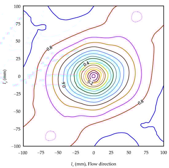 Contours of the second-order structure function for the roughness structure at a discharge of 0.25 m3 s−1 (data extracted from Aberle and Nikora [10]).