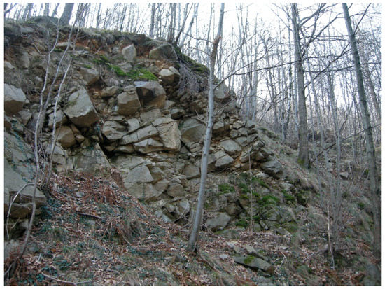 Figure 6. Loosened rocks outcropping in sector 2 characterized by high permeability due to fractures.