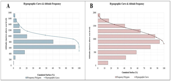 Hypsographic Curves of Miaogou (A) and Gaojiaping (B) Watershed.