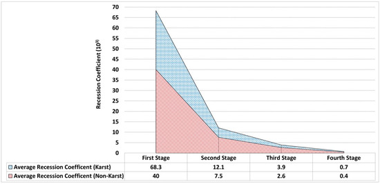 Average recession coefficients of the four stages of the recession curves.