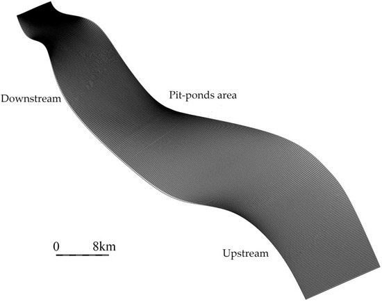 4.1. Hydrodynamic Analysis of the Pit-Ponds Section