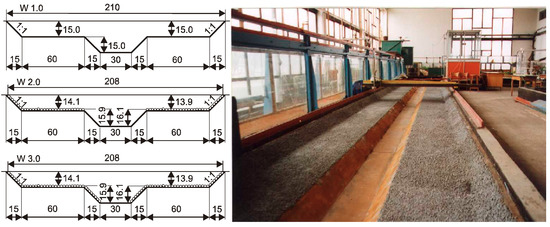 Diversification of the surface roughness in the channel was obtained by painting the concrete of a blurred surface with paint (called a smooth surface), or by applying a terrazzo layer with a grain diameter of 6–12 mm (called a rough surface).
