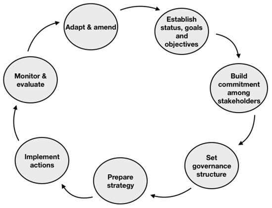 The Integrated Water Resources Management (IWRM) planning cycle [47,48]. (Adapted from Global Water Partnership. Integrated Water Resources Management Plans: Training Manual and Operational Guide, 2005.).