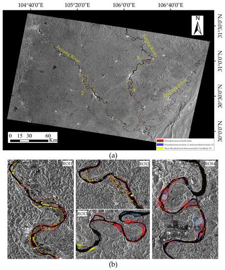 - Clement, M.A.; Kilsby, C.G.; Moore, P. Multi-temporal synthetic aperture radar flood mapping using change detection. J. Flood Risk Manag. 2017, 11, 152–168. [Google Scholar] [CrossRef]