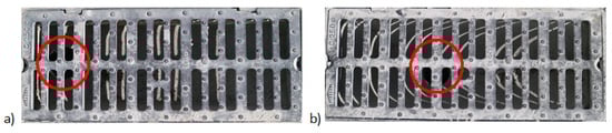 Figure 1 illustrates two gullies, where the connections to the buried system are vertical and located in two different positions along the gully longitudinal axis. The inlet efficiency of gullies is not well known, and their discharge coefficients depend mainly on the geometry, the hydraulic head, and the velocity field [