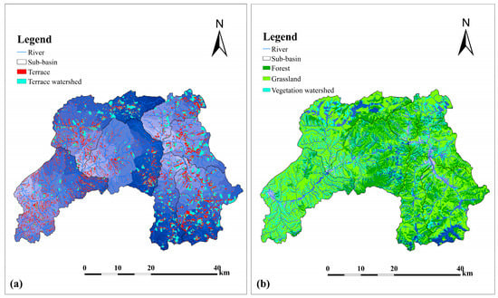 Extraction of terrace watershed (a) and vegetation watershed (b) of Pianguanhe in 2010s.