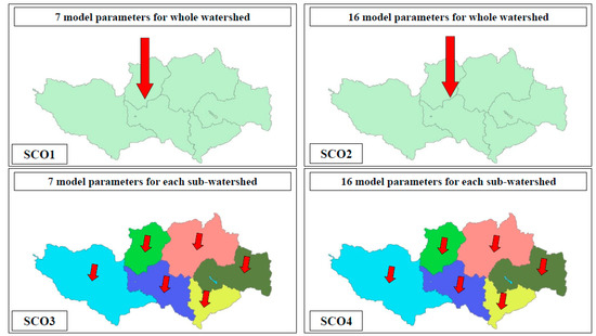 Four different calibration schemes (SCOs) in multiple sub-watersheds.