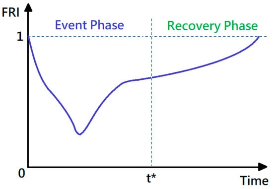 Once the indicators for evaluating FRI in the event phase and the recovery factor in the recovery phase are calculated, the time series of FRI can be computed. Like the calculation of the indicators, the computation of the FRI time series should be divided into event and recovery phases.