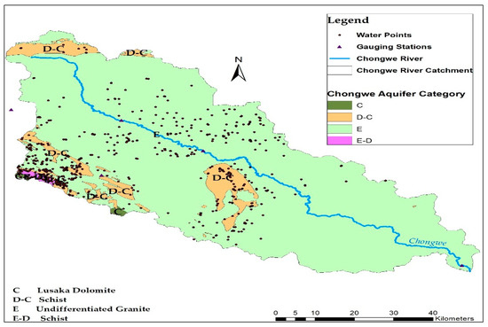 Hydrogeology map of Chongwe River catchment (modified after [13]).