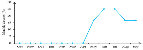Groundwater abstraction data for rural water supply, industry, domestic and irrigation purposes were collected from WARMA and the Groundwater Resources Management Support Programme (GReSP)/Bundesanstalt für Geowissenschaften und Rohstoffe (BGR) database and analyzed using GeODin software [26] and Microsoft excel. Rural water demand encompassed all domestic-type water requirements outside the urban areas [27]. In WEAP, the monthly variation of water abstraction for irrigation was derived as a function of rainfall as illustrated in Figure 4. Supplementary irrigation was also a common practice during shortage of rainfall.