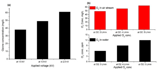 3.2. Effect of Varying Oxygen Flow on the Concentration of O3 in Water and Air Stream