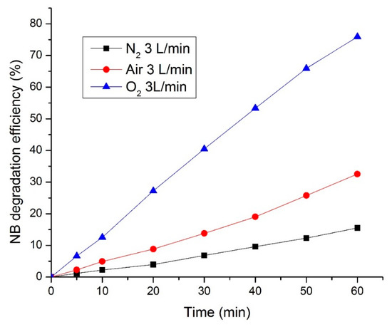 3.3. The Effect of Different Carrier Gases on NB Degradation