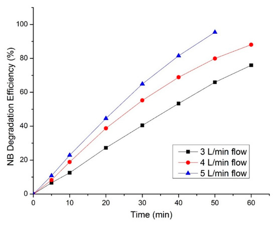 3.4. The Influence of Oxygen Flow Rate on NB Degradation