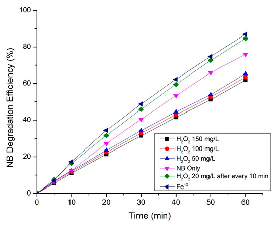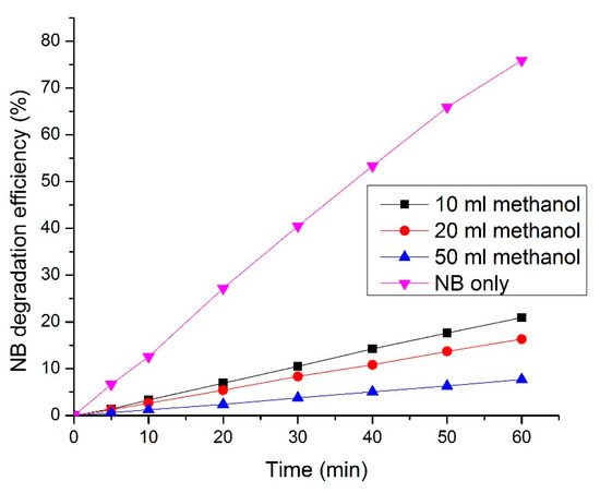 3.7. Effect of Addition of Methanol on the Degradation of NB