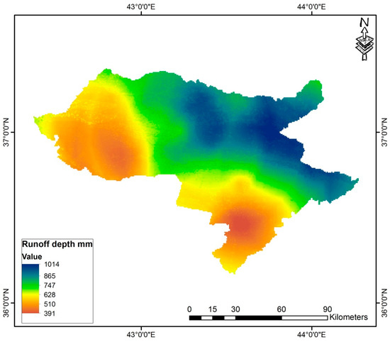 Runoff mapping is a significant principle for identifying an appropriate location for rainwater harvesting. The water source during the runoff has been calculated through the runoff depth. To evaluate the runoff, the depth Soil Conservation Service (SCS) and Curve Number (CN) were derived. Low runoff depth potentials which start from 391 mm have been located in the south and west part of the study area, while high runoff depths of up to 1014 mm have been located in the northeast part of the study area (Figure 4).