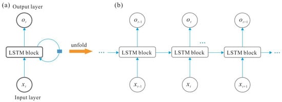 In Equations (6) and (7), f, i, C, o and h are the forget gate, input gate, cell, output gate, and hidden output, respectively, and σ and tanh represent the gate activation function (the logistic sigmoid in this paper) and the hyperbolic tangent activation function, respectively, W represents the corresponding weight coefficient matrix.