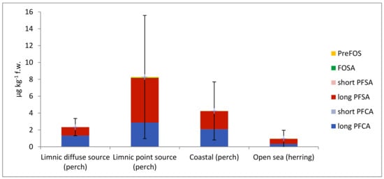 - Koponen, J.; Airaksinen, R.; Hallikainen, A.; Vuorinen, P.J.; Mannio, J.; Kiviranta, H. Perfluoroalkyl acids in various edible Baltic, freshwater, and farmed fish in Finland. Chemosphere 2015, 129, 186–191. [Google Scholar] [CrossRef]