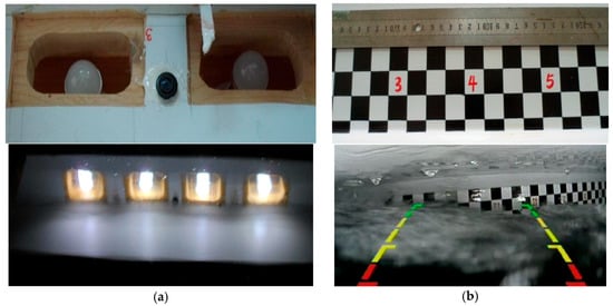 Inner cushion chambers devices. (a) Inner camera and jacklights; (b) Inner gridline and working condition.