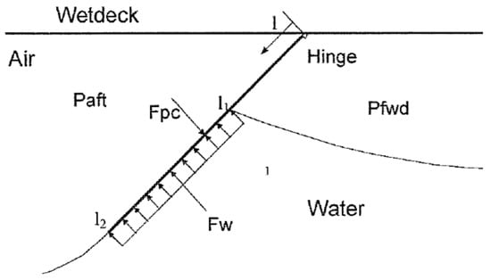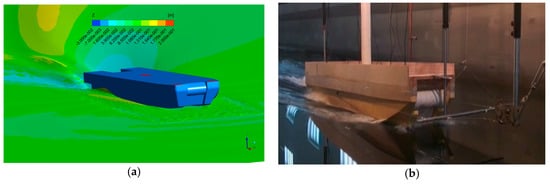However, the results showed that the total resistance of the sidewall hovercraft is increased because the separator seal generated a high seal-resistance [,]. Doctors took a model test on a sidewall hovercraft Scot09, with a thin plate demihull. The results showed a positive effect of the air cushion compartment []. Neu studied the resistance performance of T-craft and achieved a good prediction accuracy []. Maki calculated the resistance of the SES in still water. The results were in good agreement with Doctors’ results []. Yang analyzed the variation law of resistance with the changing airflow rate based on a PACSCAT towing test data [,], but no further analysis on the relationship between the cushion pressure distribution and motion characteristics was performed. Guo introduced a seakeeping analysis method for the PACSCAT by combining the 2.5-D theory and simplified wave-equation [], but only seakeeping performance is discussed.